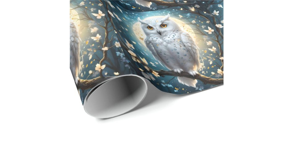 Snowy Owl And Moon With Sparkle, Wrapping Paper