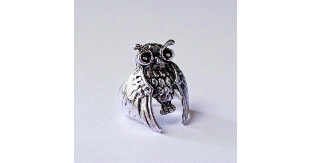 Sterling Silver Owl Ring, Gothic Boho Statement Wrap Band