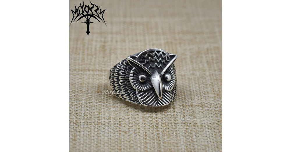 Owl Ring Men Silver Stainless Steel Detailed Owl Face