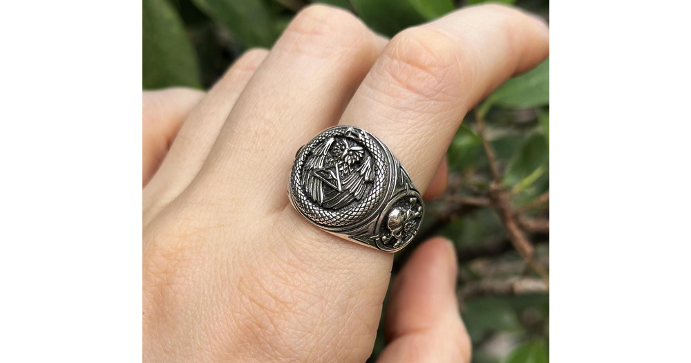 Ouroboros Ring STERLING SILVER 925 Owl All Seeing Eye Pyramid Sacred Ancient Symbol Skull and bones
