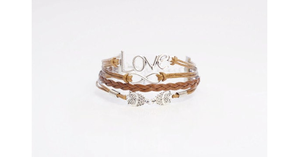 Love Infinity Owls Light Brown Multilayered Cord Bracelet