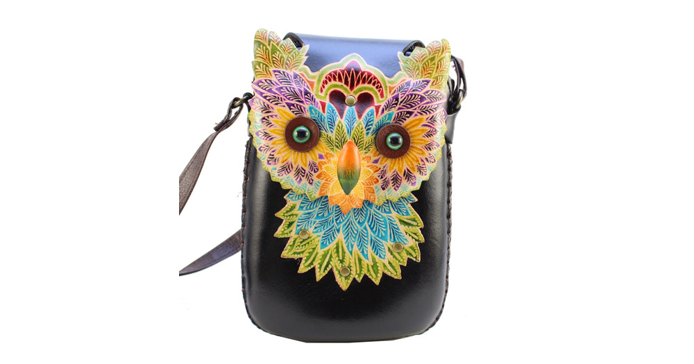 Genuine Handmade Leather Colorful Owl Purse / Crossbody