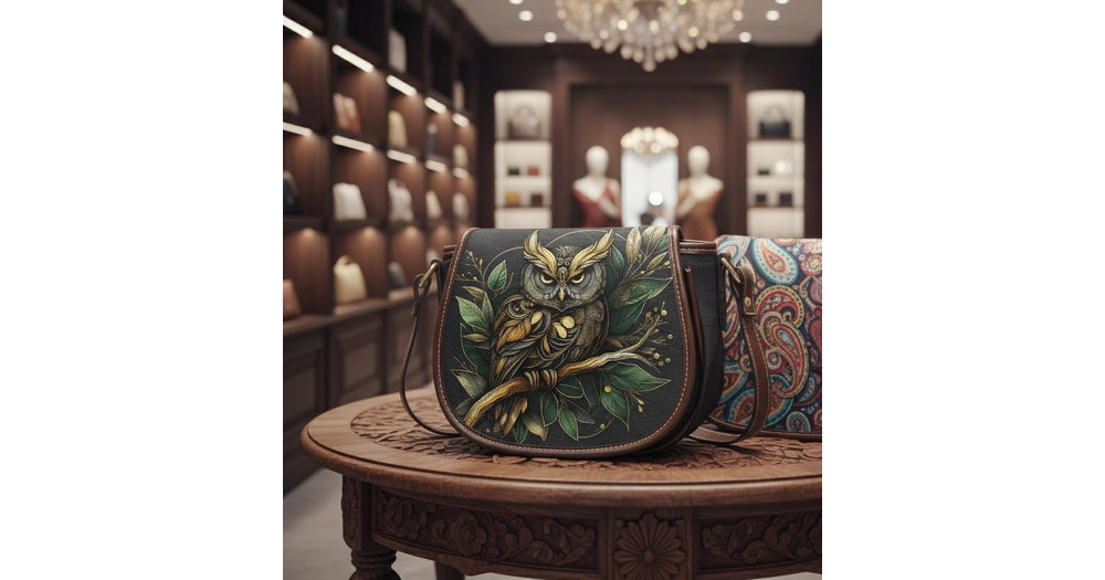 Owl Saddle Bag: Bohemian PU Leather Crossbody (Emerald Gold Print)