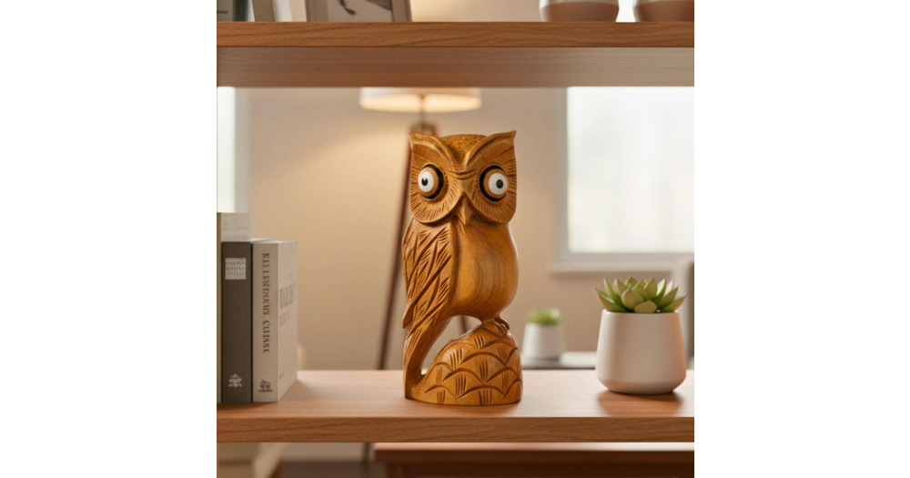Hand Carved Wooden Owl Statue | Handmade Wood Sculpture | Shelf Decor | Gift for Nature Lovers