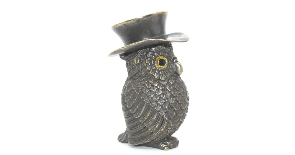 Owl Bird Top Hat Brass Match Safe Vesta Case