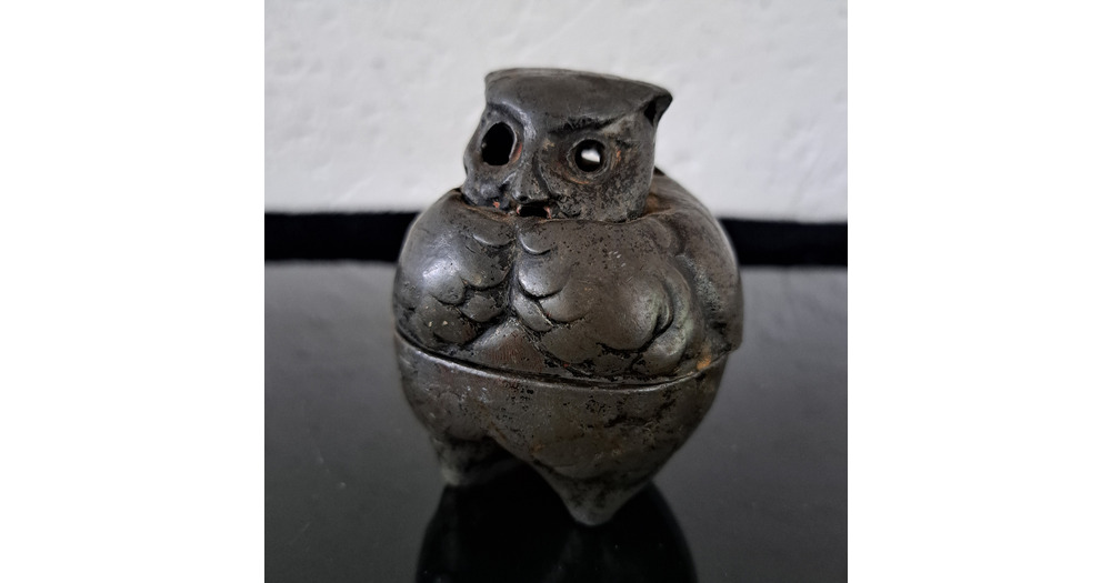 Antique Japanese metal horned owl incense burner.