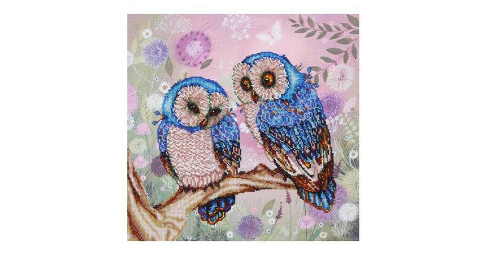 Bead Embroidery Kit OWLS DIY Needlepoint craft set Beaded stitching beadwork bird bead kit BIRDS be
