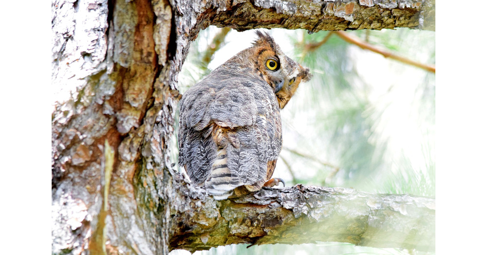 Great Horned Owl, Photograph, Print, Wildlife, Nature, Bird Art, Raptor Print, Pine Tree Branch, Pho