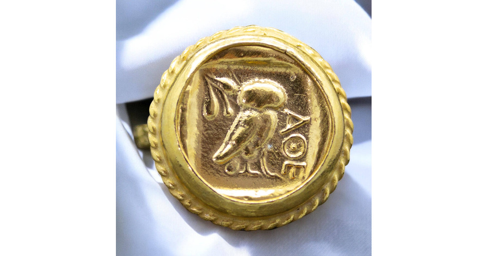Ancient Greek Owl Coin Ring | 24K Gold Plated Sterling Silver | Athena Owl Coin Ring | Greek Dainty