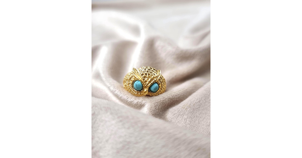 Turquoise Owl Brass Ring, Vintage Style Adjustable Owl Ring, Boho Animal Jewelry, Boho Fashion Jewel