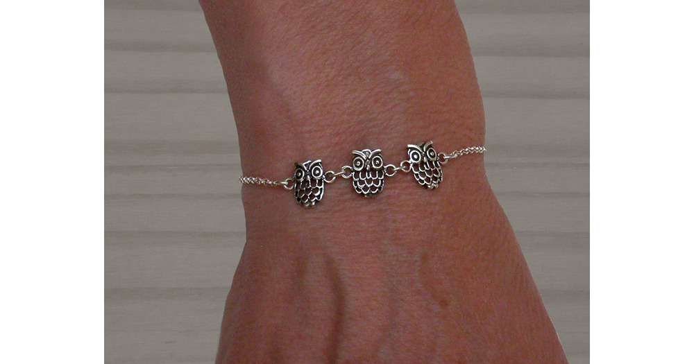 Sterling silver owl bracelet, Silver bracelet, Lucky charm, Owl bracelet, Adjustable bracelet, Amule