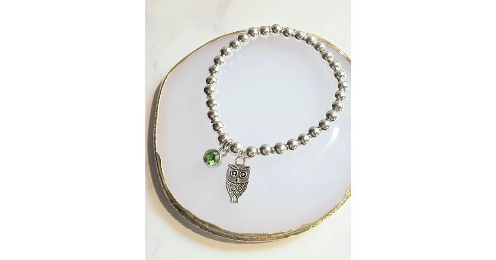 Silver Owl charm bracelet, Sterling Silver Bead bracelet, Owl pendant, Owl lover gift, bead bracelet