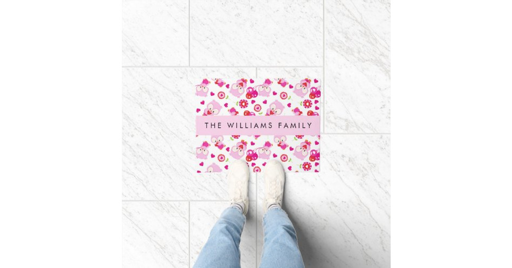 Pattern Of Owls, Cute Owls, Pink Owls, Your Name Doormat