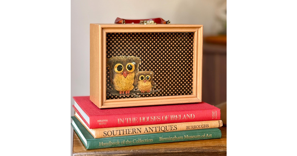 Vintage Wooden Box Purse, 3D Owl Handbag, Marbled resin handle