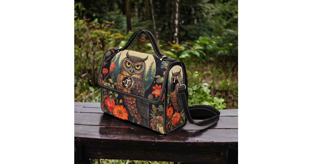 Dark Cottage Goth Owl and Dark Garden Satchel, Dark Cottagecore Owl purse, Canvas Wiccan Owl Dark Wi