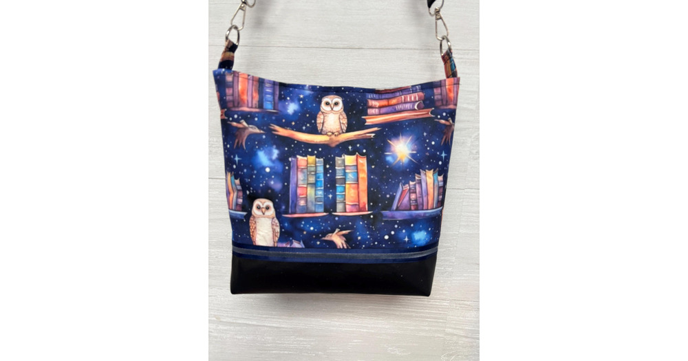 Crossbody Book Owls Fabric Purse with a Vinyl Bottom and adjustable handle