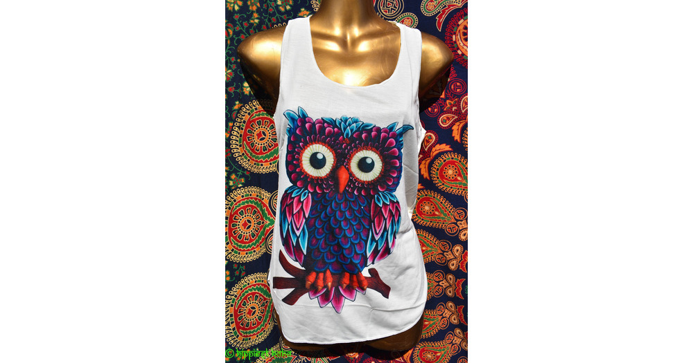 Lightweight ladies / girls hippy boho festival summer vest tops, owl print and dream catchers