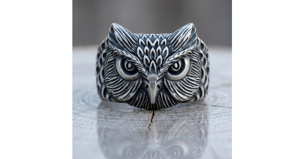 Detailed Owl Ring 925 Sterling Silver Oxidized Finish Animal Jewelry Statement Band Gothic Bird Ring