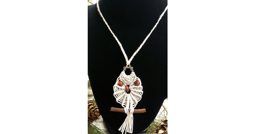 Macrame Owl Necklace on Hemp Cord - Knotted Jewelry - Owl and Bird Gifts for Men or Women - Earthy J