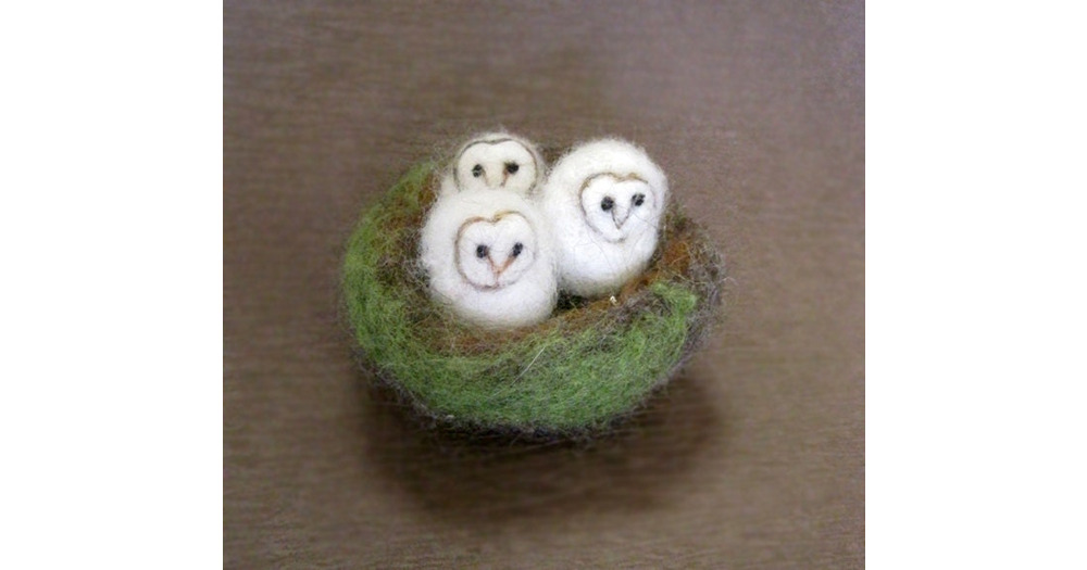 Owls in a nest, needle felted owl, Three Bird Nest, baby owls, miniatures, Barn Owl, Felted toy, nee