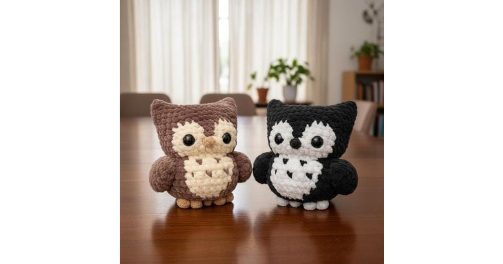 Chubby Owl Crochet Pattern, Amigurumi Owl Tutorial, Velvet Plush Stuffed Bird Toy, Forest Animal Nur