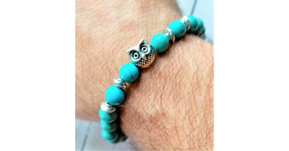 Turquoise Bead Bracelet with Stainless Steel Owl Charm