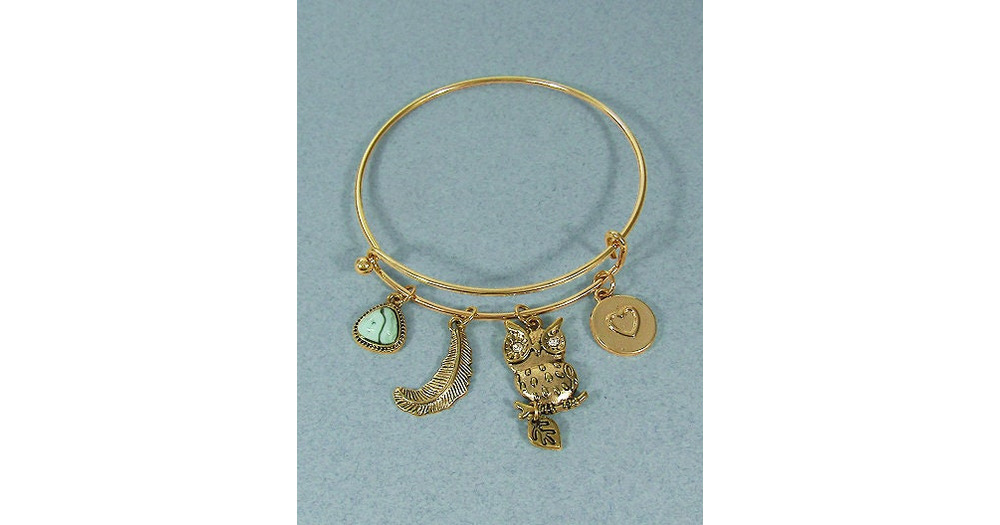 Stone Feather Owl Heart Wired Cuff Bracelet