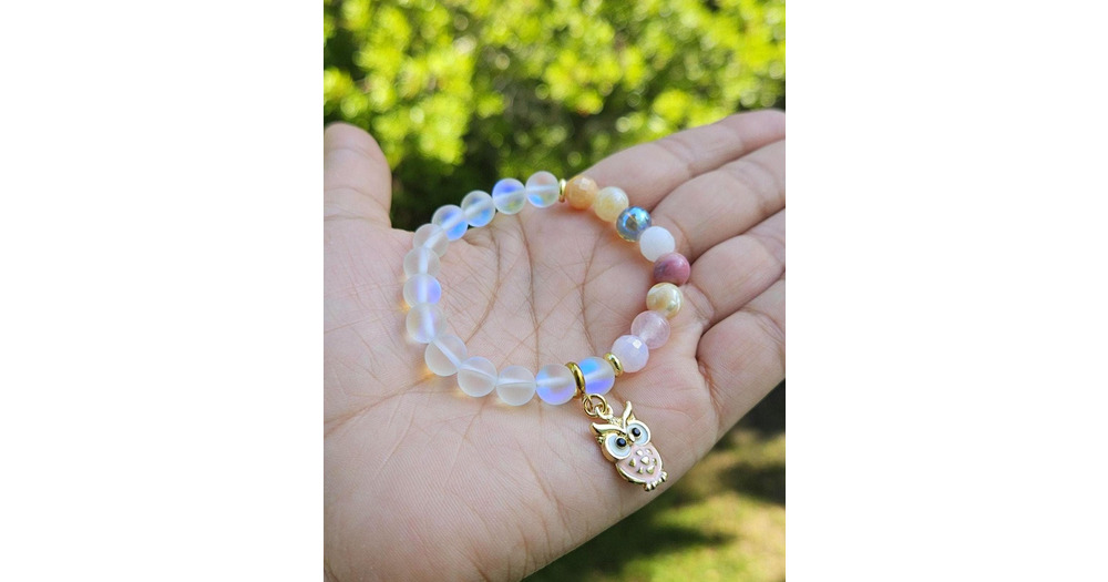 Women,kids,unisex owl glass opal beaded bracelet,wisdom bracelet