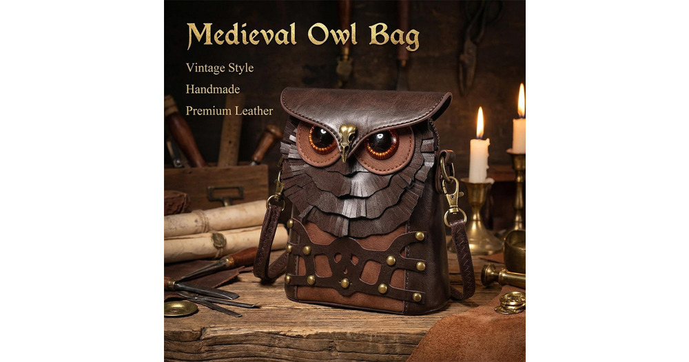 Handmade Owl Crossbody Bag Steampunk Faux Leather Shoulder Purse Gothic Bird Messenger Bag Animal S