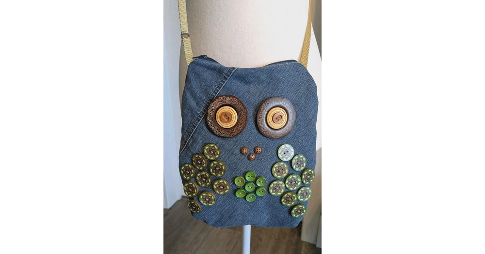 Vintage Owl Denim Purse with Button Embellishments – Handmade in USA