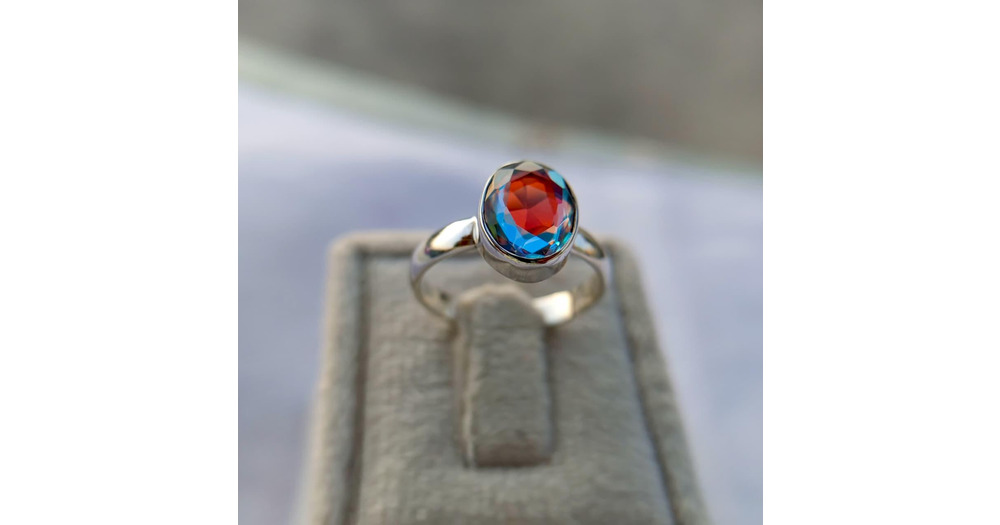 Mystic Topaz Sterling Silver Owl Ring – Handmade Rainbow Gemstone