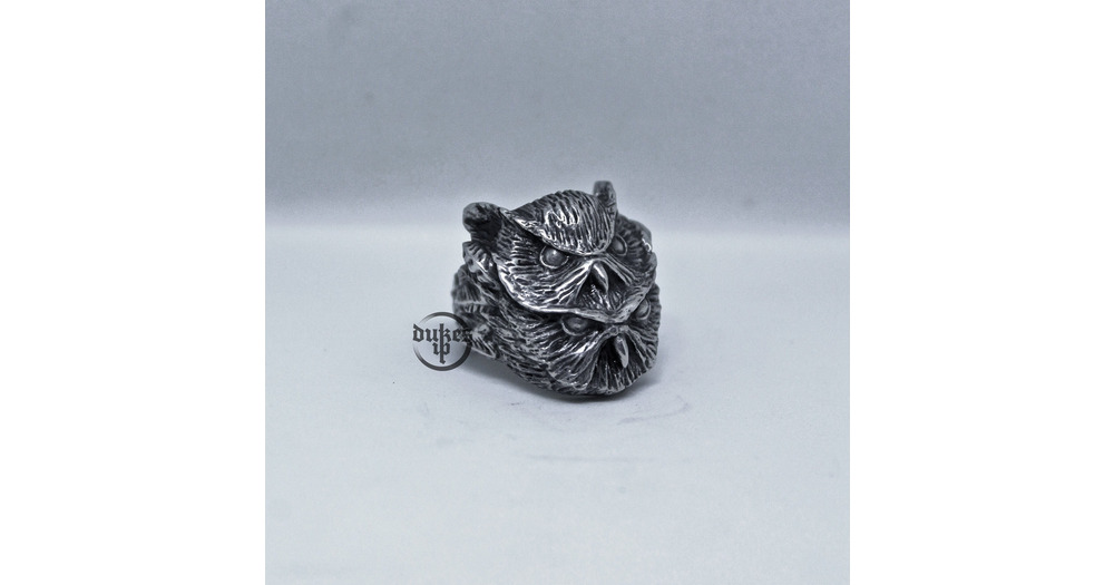 Hand sculpted psychedelic trippy Two Head Owl ring : Oxidized lead free pewter ring. Perfect Christm
