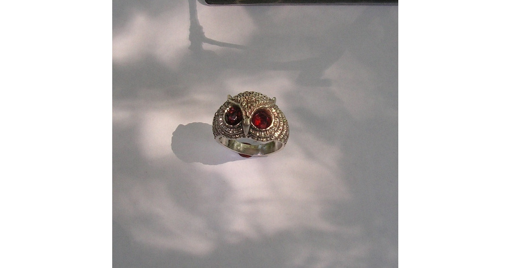 Owl Ring With Fire Citrine Eyes in Sterling Silver