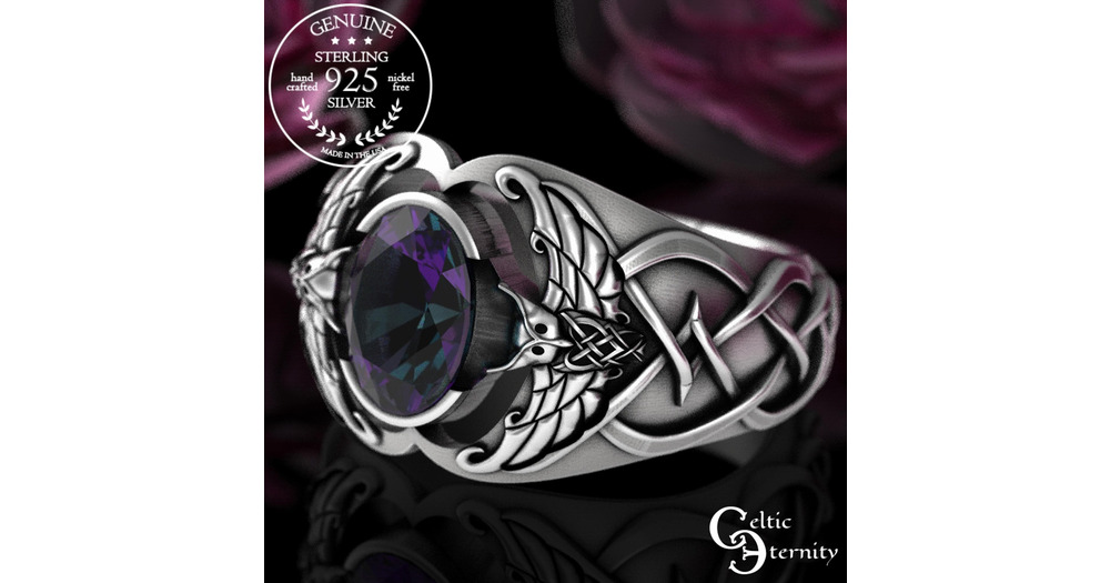 Mens Owl Alexandrite Ring, Sterling Silver Viking Owl Ring, Mens Viking Wedding Ring, Alexandrite St