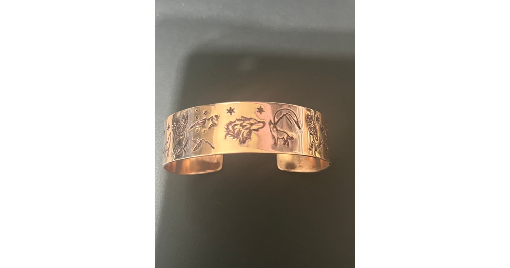 WOLF'S Howling With Owls and Fox on Sides Hand Crafted Solid Copper Bracelet -Mountains-Stars &a