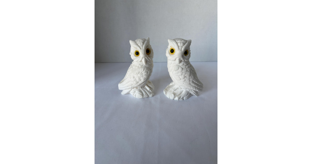 Vintage Italian Alabaster Owls, Set of Two, Carved alabaster stone, Excellent Condition, Heavy, 1970