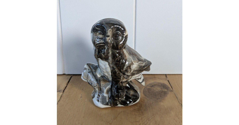 Vintage Owl Figurine - Marbled Coloring - Made in USA - 4"
