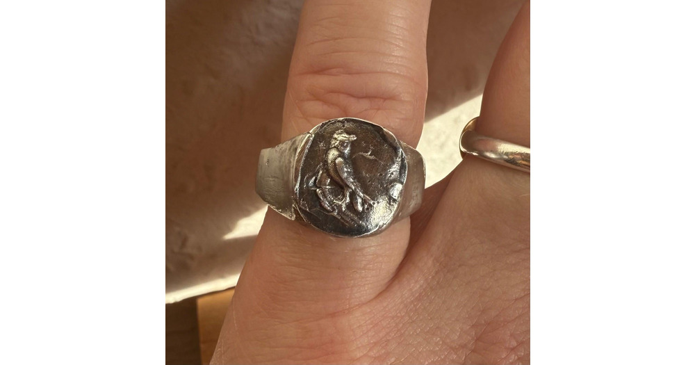 Owl Signet ring sterling and fine silver - size L