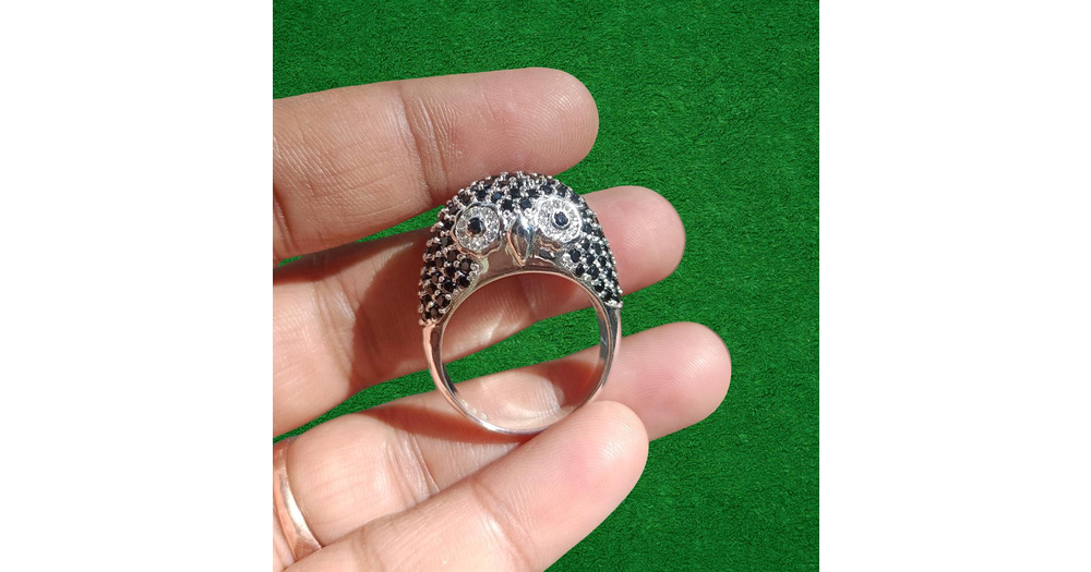 Round Cut Simulated Black Diamond Owl Wedding Engagement Ring 14K White Gold Plated 925 Sterling Sil