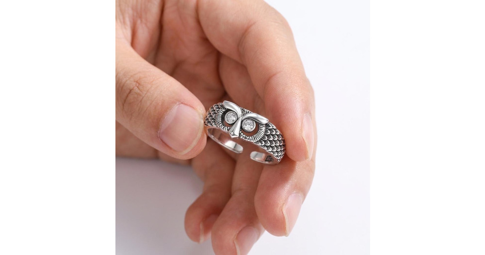 Owl Ring Silver Crystal Eye Adjustable Boho Stainless Steel Women Gift