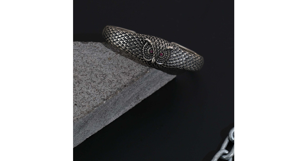925 Sterling Silver Owl Design Men's Bracelet, Thick Bracelet, Personalized Bracelet, Gift For L