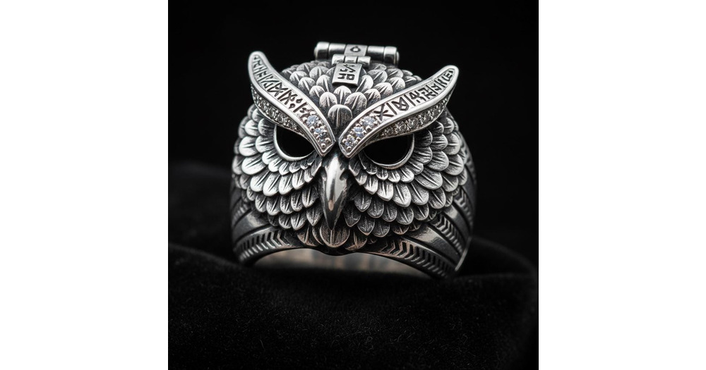 Sterling Silver Owl Ring, Gothic Pagan Jewelry, Cubic Zirconia Accents