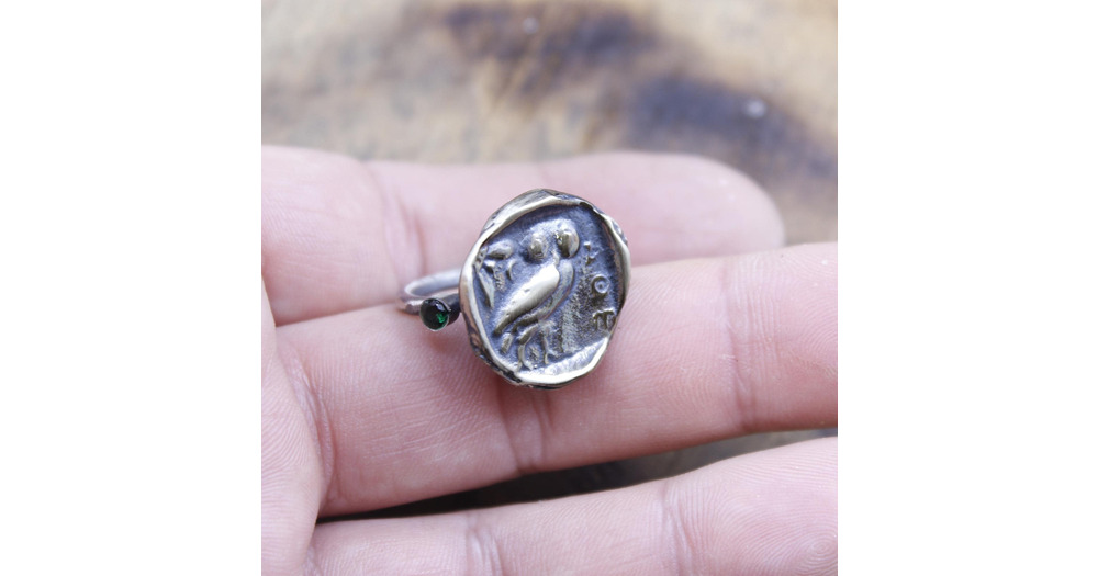 Oxidized Bronze Owl Coin Ring – Ancient Greek Style 925 Silver