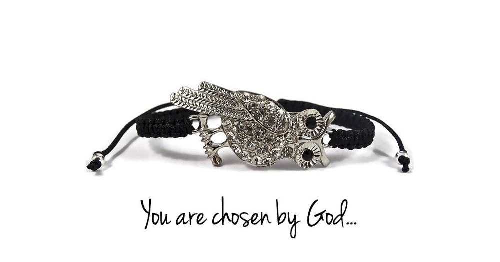 Silver Rhinestone Owl Macrame Bracelet~Gift For Her~Owl Jewelry~Crystal Rhinestone Bracelet~Christia