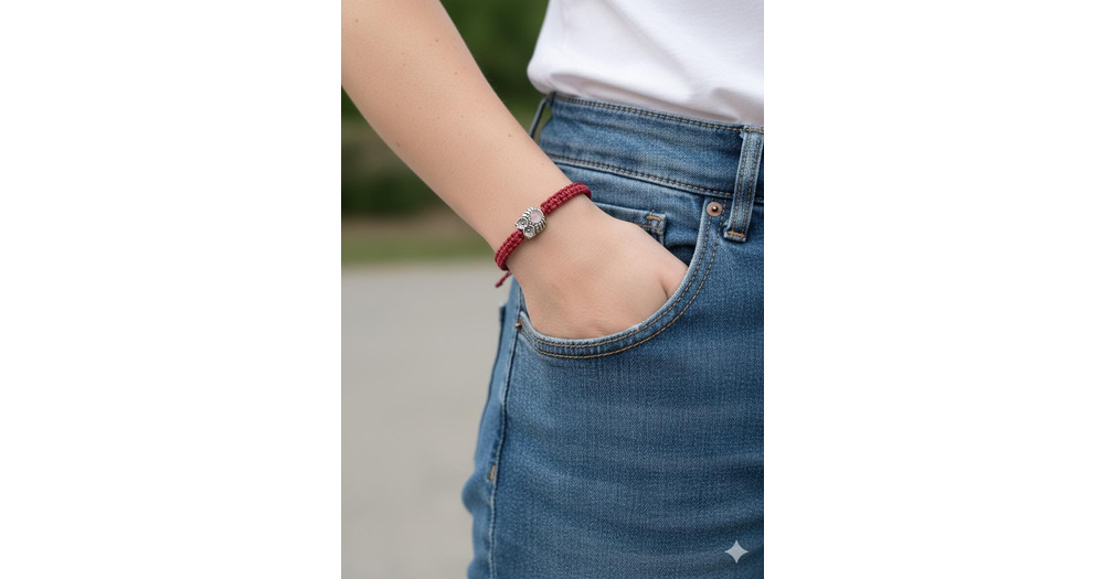Handmade red Macrame Owl Bracelet – Adjustable Boho Cord Wristband with Owl Charm – Wisd
