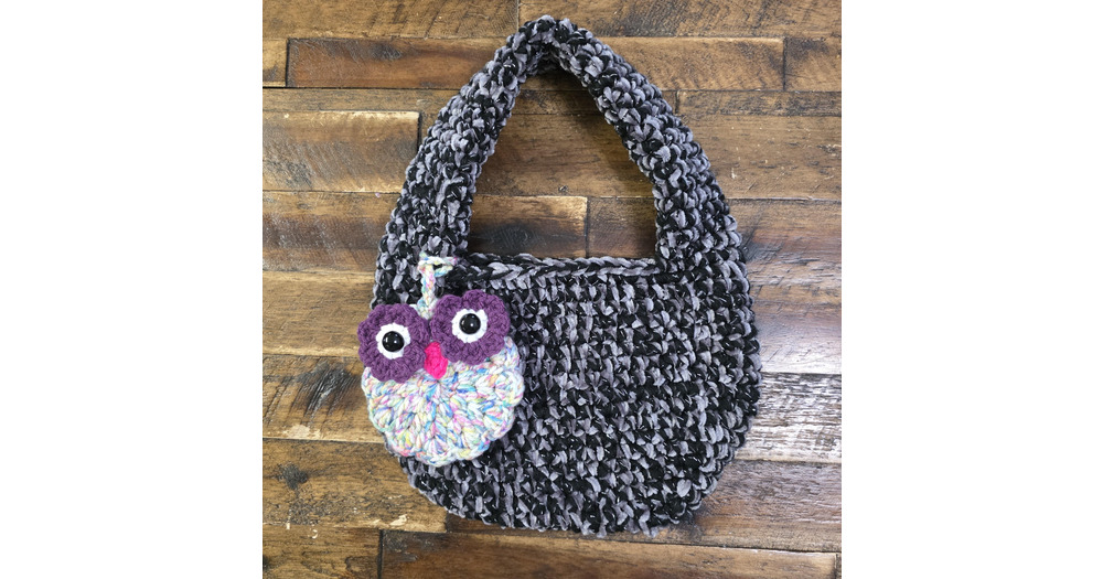 Crochet Handbag with owl pouch, crochet black bag